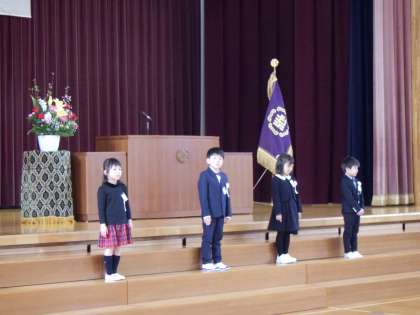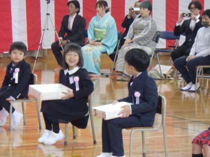 一人一人元気な声でお返事ができましたね。記念品もお礼を言って受け取ることができました。