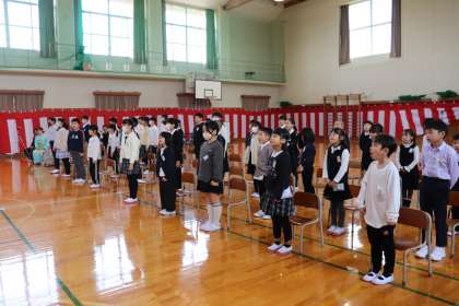 お兄さん、お姉さんたちが歓迎の言葉と歌を贈ってくれました。今日から池多っ子の仲間入りですね。