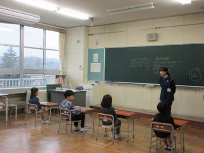 朝の会が始まりました。担任の先生から、今日の予定や過ごし方を聞いています。