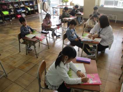 春の詩の学習です。教科書に印を書き込みながら、真剣に取り組んでいます。
