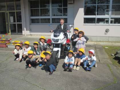白バイにも乗せていただき、交通安全への意識を高めました。