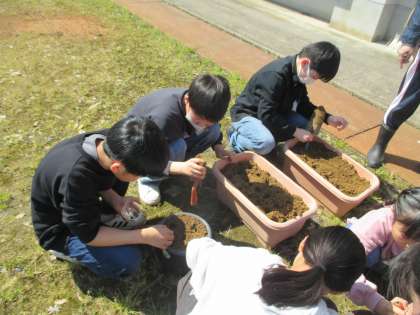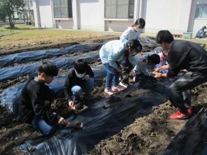今日は、理科の実験で使うため畑に畑にジャガイモを植え、ホウセンカの種をプランターにまきました。ジャガイモは1人1個以上は植えたので、たくさん収穫できたら調理実習で使おうと子供たちは、楽しみな様子でした。