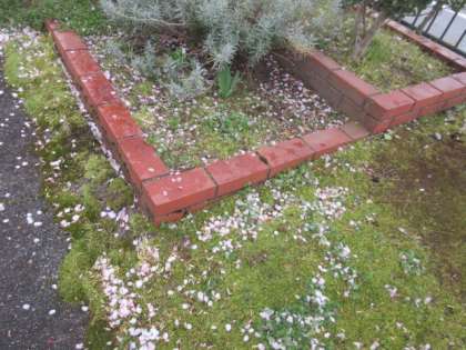 緑が増えたぶん、花びらのじゅうたんが広がります。