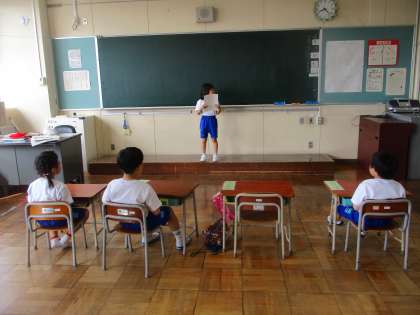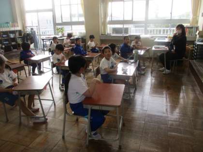 朝のトレーニングを終え、朝の会を始めます。時間を意識して行動する姿がステキです。