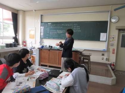 理科の授業。今日の課題は、「集気びんの中でろうそくを燃やし続けるには」です。