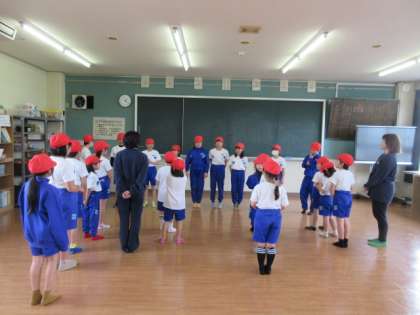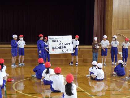 さっそく、応援の振り付けや歌を5、6年生が下級生に教えていました。