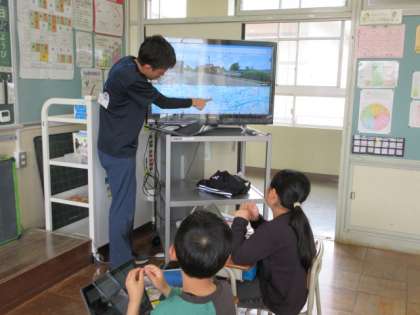 地図とストリートビューを使って、学校の周りの土地の利用を調べます。