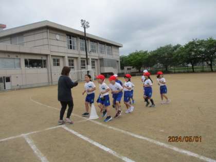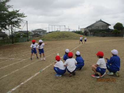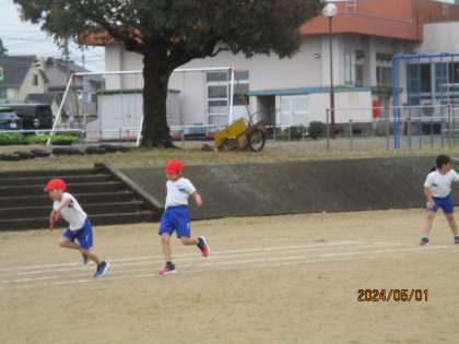 今日は1・2・3年生合同の体育で、運動会の「下学年リレー」の練習をしました。勝っても負けても一生懸命走ること、競技以外の入退場の姿勢をかっこよくすることを意識して練習に取り組みました。1年生も長いトラック半周を力強く走りきることができるようになってきました。