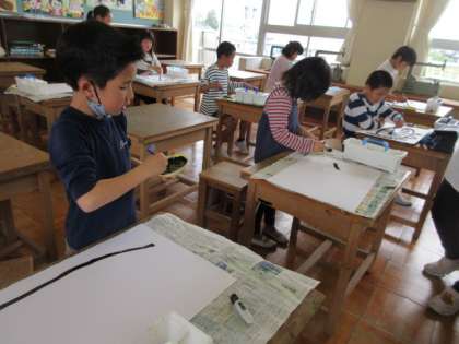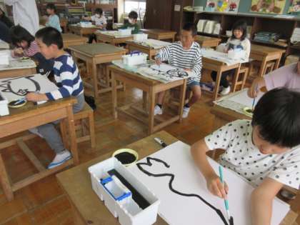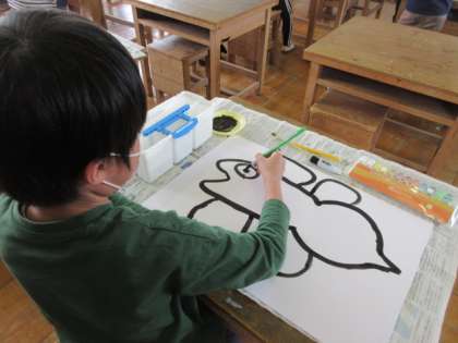 図工の時間です。思い思いに魚を描いています。