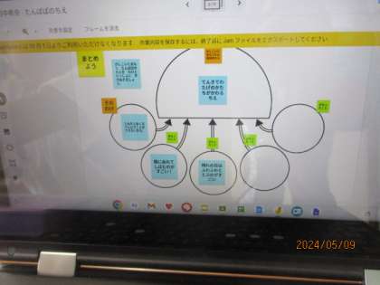 「たんぽぽのちえ」を読解のポイントに沿って一人一人が書かれていることを整理しています。じっくり自分の考えを練り上げるのに一人一端末は有効なようです。