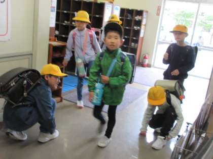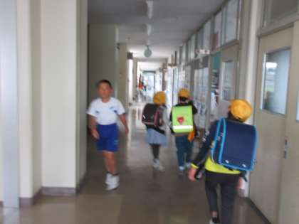 校舎に入って1分半。着替えて体育館に来る子供がいます。