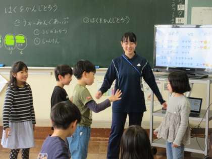 ウォーミングアップにゲームを取り入れ、リズムや曲に親しんでいます。