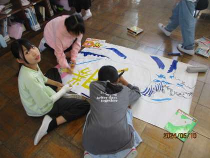 朝トレ後、素早く着替えを済ませ、朝の会までの少しの時間を運動会の装飾制作に使っていました。時間を無駄にしない、さすがの6年生です。加えて言うと、これは白団の作品ですが、赤団のメンバーも一緒に手伝っています。敵味方関係なく、みんなでよい運動会にしようという気持ちが表れているようでした。