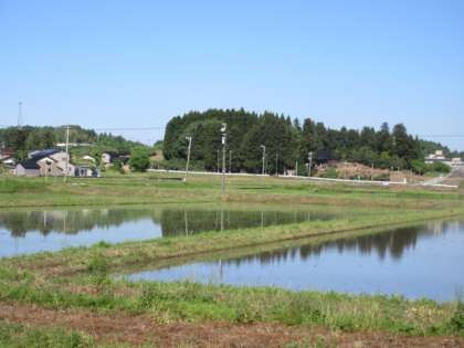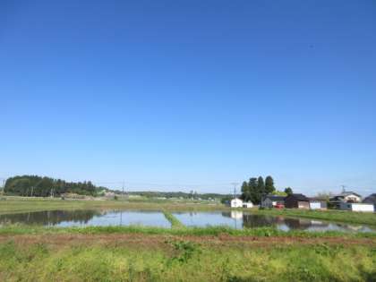 学校周辺の田んぼの水が輝いていました。