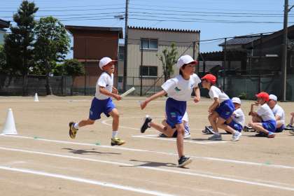 運動会の最終種目は、上学年リレーでした。見事なバトンパスでした。最後までよくがんばりました。