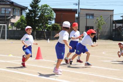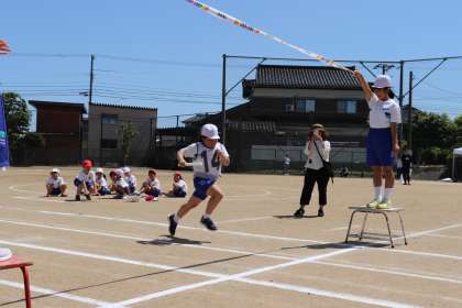 体育の時間にたくさん練習したバトンパスの成果が発揮された素晴らしいリレーでした。両団、全力を出し切ることができました。