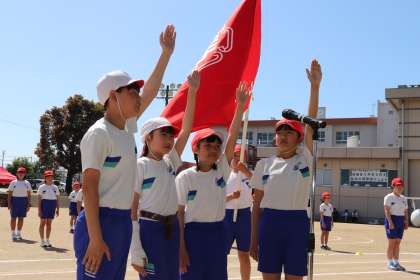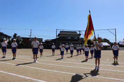 晴れ渡った青空に子供たちのやる気にあふれた表情が映え渡っています。勝負の前の真剣な表情、きびきびした動き、いい運動会になることは間違いなさそうです。