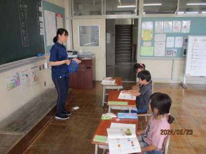 濁音、半濁音の学習です。教科書の例文を声に出して文字と音声を一致させます。リズムよく読むことができました。