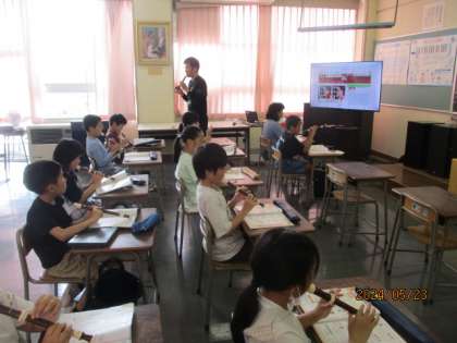 リコーダーのタンギングの学習です。4年生は昨年教わったことを再確認しています。タンギングがうまくいくといい音が出ます。基本が大切ですね。