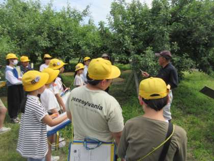 今日は、りんご農家さんから摘果の仕方を教わり、体験させていただきました。