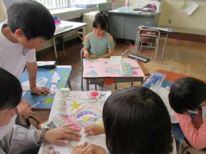 図工「やぶいたかたちから生まれたよ」の作品づくりも大詰め。