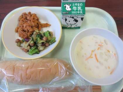 ビーンズは苦手な子供もいますが、豆には様々な栄養が含まれています。しっかり食べて午後からも元気に過ごしてほしいです。
