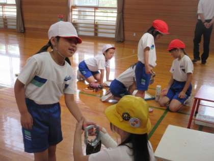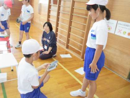 ファミリー班に分かれて、記録会を行いました。