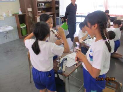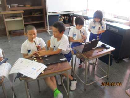 リコーダーで「きれいなソラシ」を練習しました。4年生が丁寧に3年生に教える姿が見られました。子供たちは教えるのがとても上手です。異学年合同で学習するよさを感じる一場面でした。