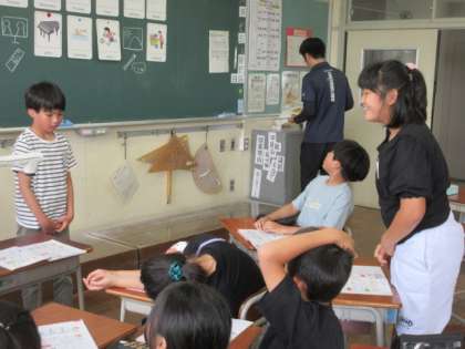 発音の仕方を教えていただきながら、友達同士でクイズを出し合い、楽しんでいます。