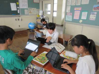 休み時間になると、全校のために掲示をしてくれる働き者の5年生でした。