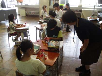2この電池のつなぎ方を変えて、モーターの回る速さを確かめています。つなぎ方によって電流の大きさは変わるのかな。