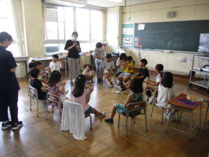 6月11日(火) 1、2年生 音楽科 公開日 2024/06/11 更新日 2024/06/11 池多っ子ゴーゴー みんなで輪になって息をそろえて、カスタネットを使いリズムうちをしています。音がそろうと気持ちがいいですね。