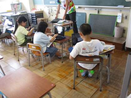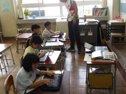 資料を見ながら、土地の利用の仕方を調べています。分かったことをクロムブックにまとめていきます。