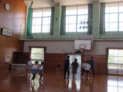 先生とバスケットボールをしたり、全校でドッジボールをしたり。