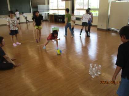 ドッジボールやボウリング、絵遊びなど、6年生が楽しい遊びを企画してくれました。