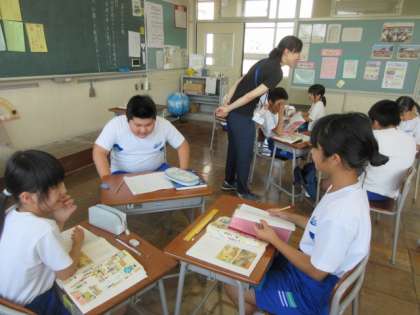 グループ学習では、漢字を使って文をつくり、友達同士で紹介し合っていました。