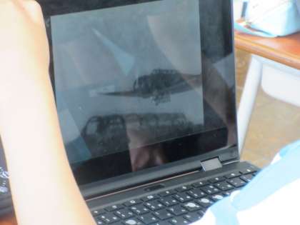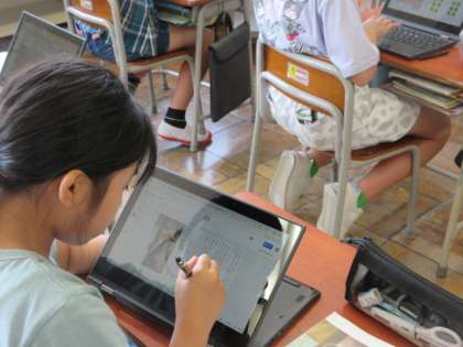 書き込み、文章に線を引く、戦争の動画を見るなど、クロムブックを自在に使っています。