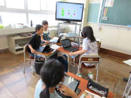 考えがまとまり、グループをつくって交流が始まりました。