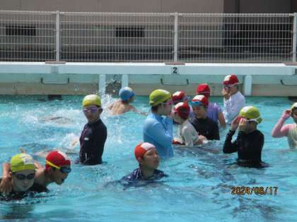 待ちに待ったプール学習です。今日は水慣れから。友達と楽しく水の中で体を動かします。それぞれのめあてに向かってプール学習を進めていきましょう。