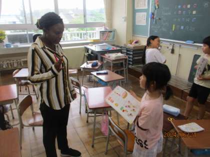 1から20までの数の言い方や、数を尋ねる「How many」の表現を学習しました。出てきた表現を使ってコミュニケーション。ALTの先生とも楽しくやりとりをすることができましたね。