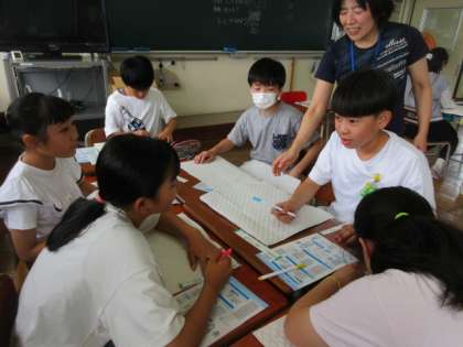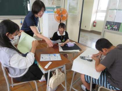 トートバッグかナップサックか、作る物を選び、取り組んでいます。