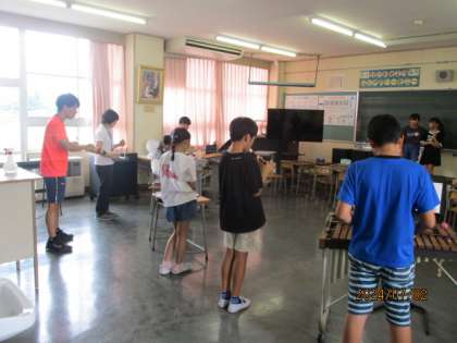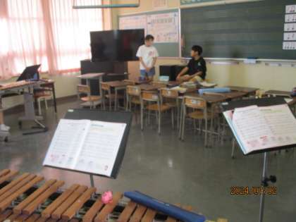 ラバースコンチェルトの合奏に取り組んでいました。演奏を客観視するために、聞く役を決めて気付いたことを伝えていました。自分たちでよりよいものを作る大事な過程ですね。