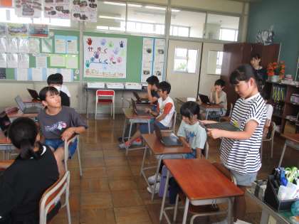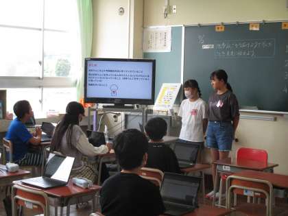 「池多りんごから広げよう」の単元で調べたことや分かったことをスライドショーにまとめたものを発表しました。先週に引き続き2回目となります。友達の発表を聞いた後は、すぐにジャムボードに感想を入力し、さらに言葉でも伝える時間を取りました。一人一人が友達の発表をしっかり聞く姿が印象的でした。