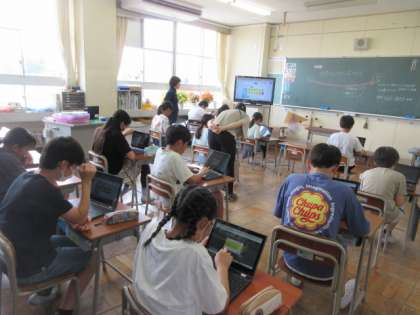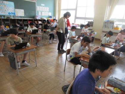 調べ学習、インタビューで学んだことをみんなの前で発表した高学年。