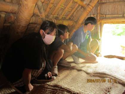 次に北代縄文広場へ行きました。土器作りを体験したり縄文時代の住居を見学したりしました。何千年も前に同じ土地にこういうものがあったなんて、不思議な感覚になりましたね。