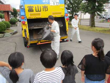 また、ごみ収集車の見学では、近くで動いている様子を見学することができ、歓声を上げて見学していました。