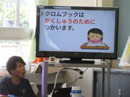 あさっての終業式では、6年生が「クロムブックの使い方」について全校に呼びかけてくれます。