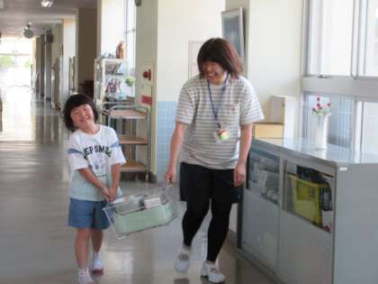 調理員さんとの自然な触れ合いも池多っ子のよさです。