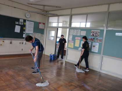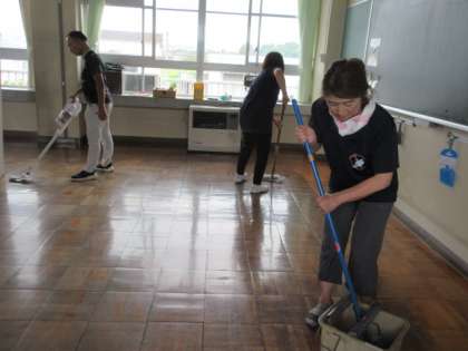 教職員でがんばりました。 教室の床はぴかぴかです。