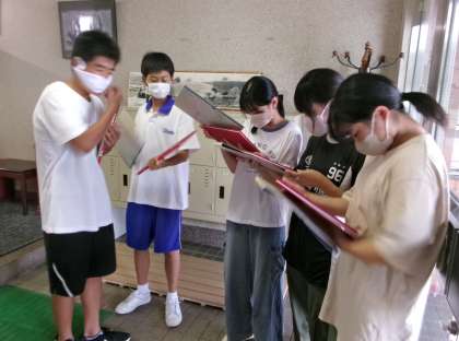 昨年度の卒業生が池多小学校にやってきました。卒業アルバムを受け取り、懐かしそうに眺めていました。